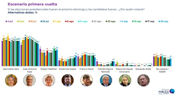 Jeannette llega a 26% en escenario de primera vuelta, seguida por José Antonio Kast con 23% (-1pto) y Evelyn Matthei con 17% (+1pto).