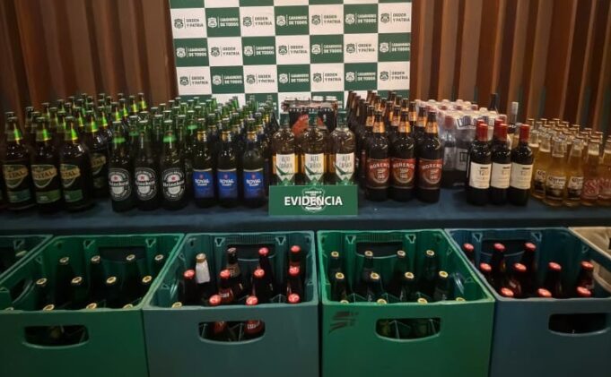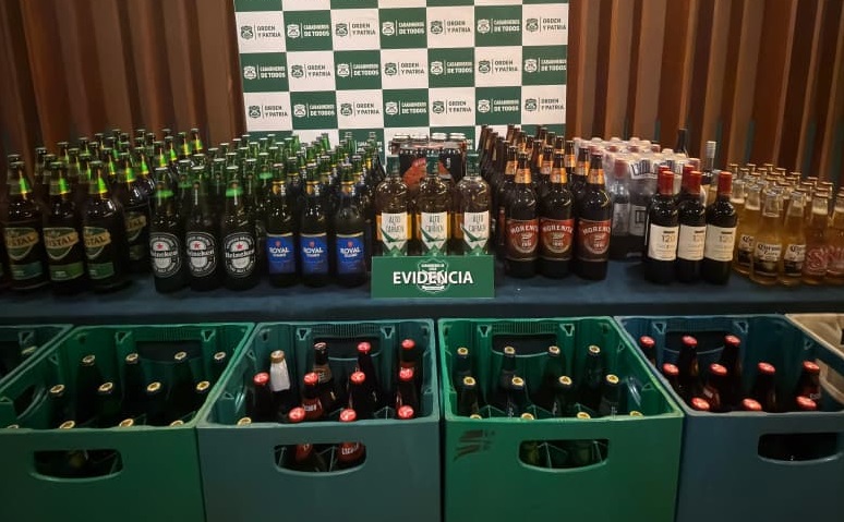 De hecho, la policía uniformada incautó casi 280 botellas de distintos alcoholes, desde cervezas a destilados como pisco, tequila y ron.